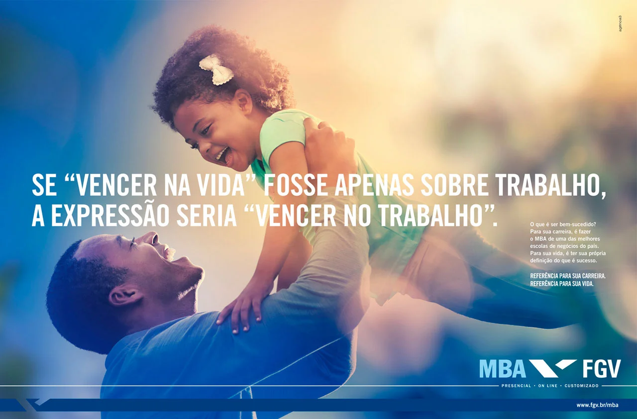 Com o objetivo de reposicionar o MBA FGV e afastar a marca dos clichês do segmento, criamos uma campanha para questionar o verdadeiro significado de ser bem-sucedido. Os títulos redefiniram expressões do ambiente corporativo, pregando um maior equilíbrio entre vida pessoal e vida profissional. Enquanto a concorrência continuou utilizando argumentos racionais para divulgar seus cursos de MBA, provocamos uma grande reflexão.